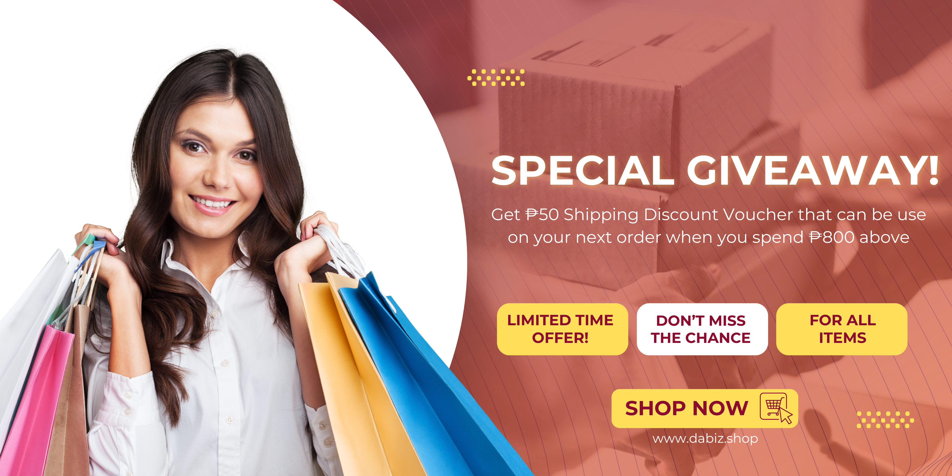 Shop at least ₱800 and receive a 50% OFF shipping fee voucher for your next purchase.
